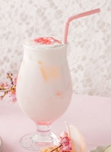 桜の甘さが広がる桜シロップにリッチな口当たりのミルクを合わせました。底には桜の塩漬け入りゼリーを置きアクセントの塩気と食感を。トップにはホイップを乗せまろやかな味わいに。三層が美しいアイス桜ラテ。