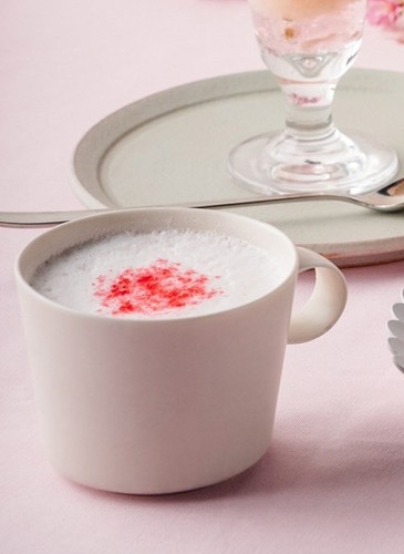 桜シロップとミルクを合わせたシンプルなホット桜ラテ。淡い桜色の可愛らしさと春の香りをお楽しみください。